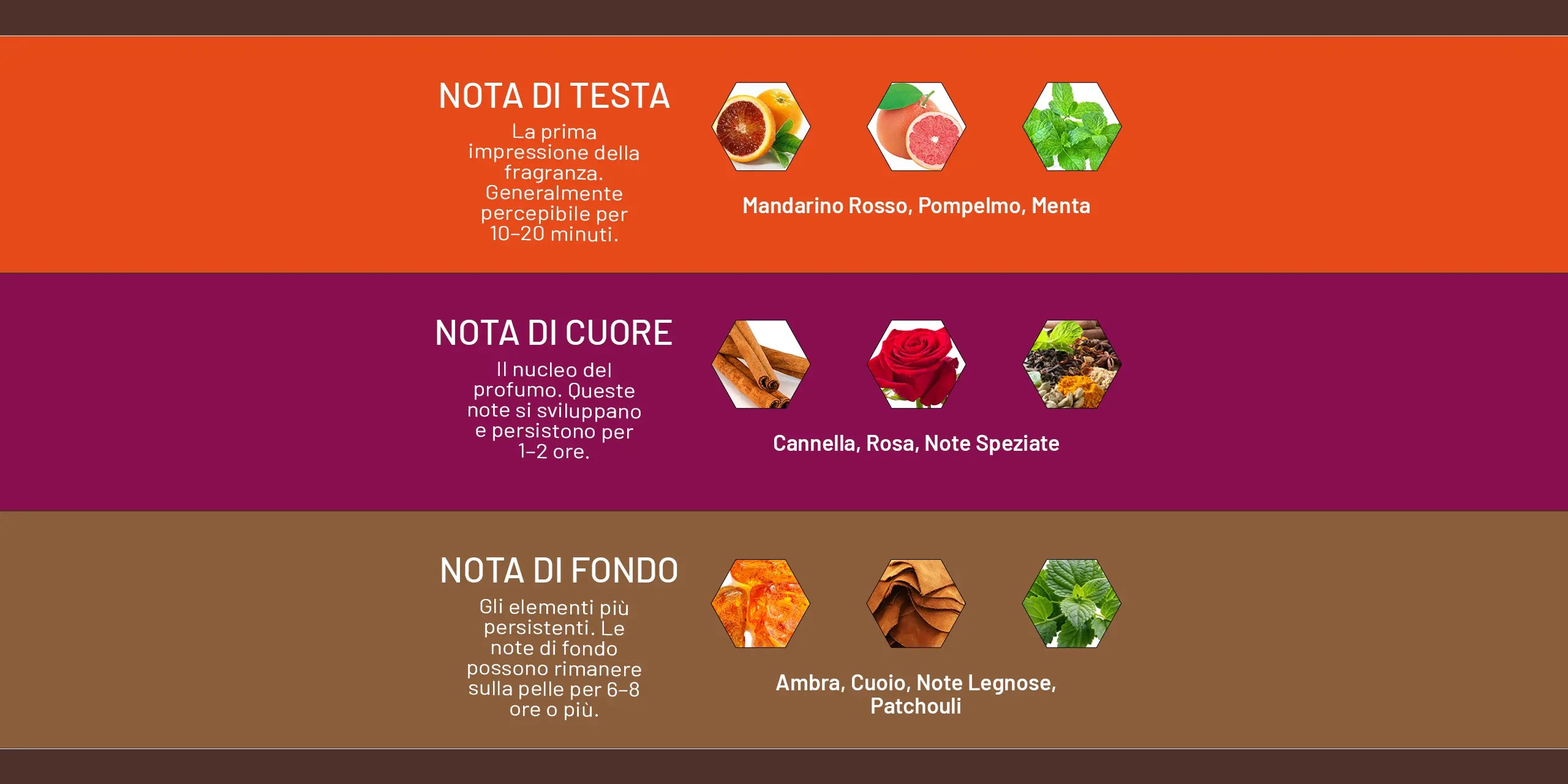 Base: Ambra, Cuoio, Note Legnose, Patchouli
