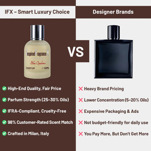 Inspired by Bleu de Chanel, Bléu Opulence is a fresh-woody alternative with a clean and smooth character. Citrus and incense create a modern edge in the opening, while woods and amber add depth. It's versatile, balanced, and easy to wear anytime. A reliable dupe for the classic blue fragrance style.