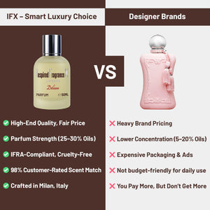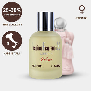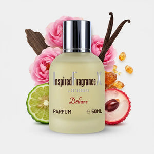 Inspired by Delina, Déliane is a fresh-rosy alternative known for its bright lychee opening and creamy florals. The mix of rose and peony brings a soft elegance while rhubarb adds a modern twist. It dries down into warm woods and musk for a smooth finish. A close match for those who love airy, feminine florals.