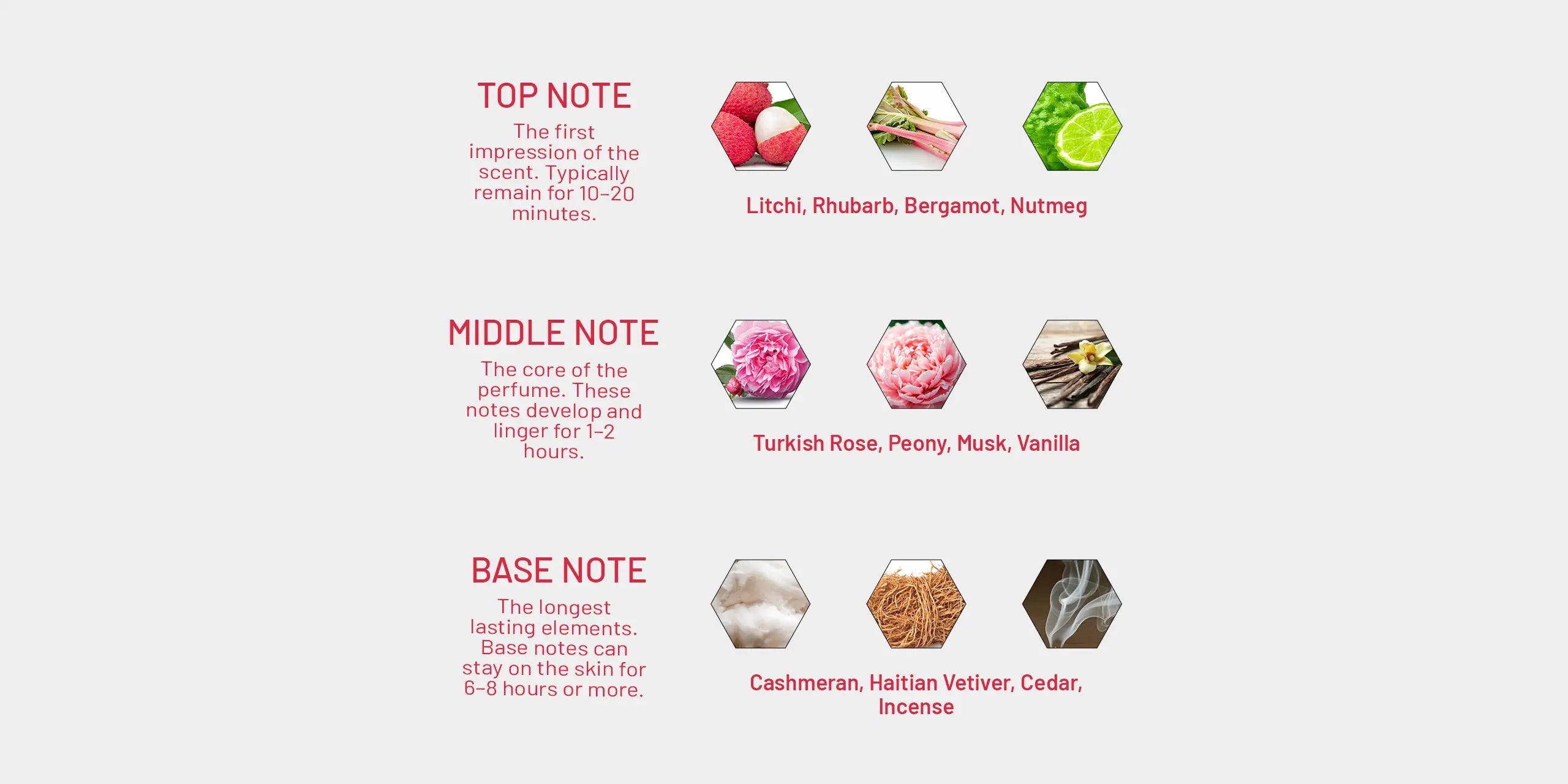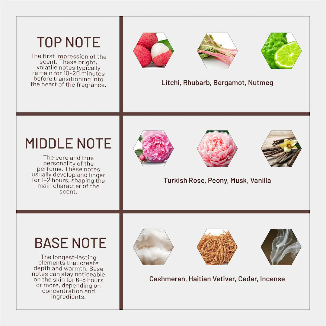 Middle: Turkish Rose, Peony, Musk, Vanilla