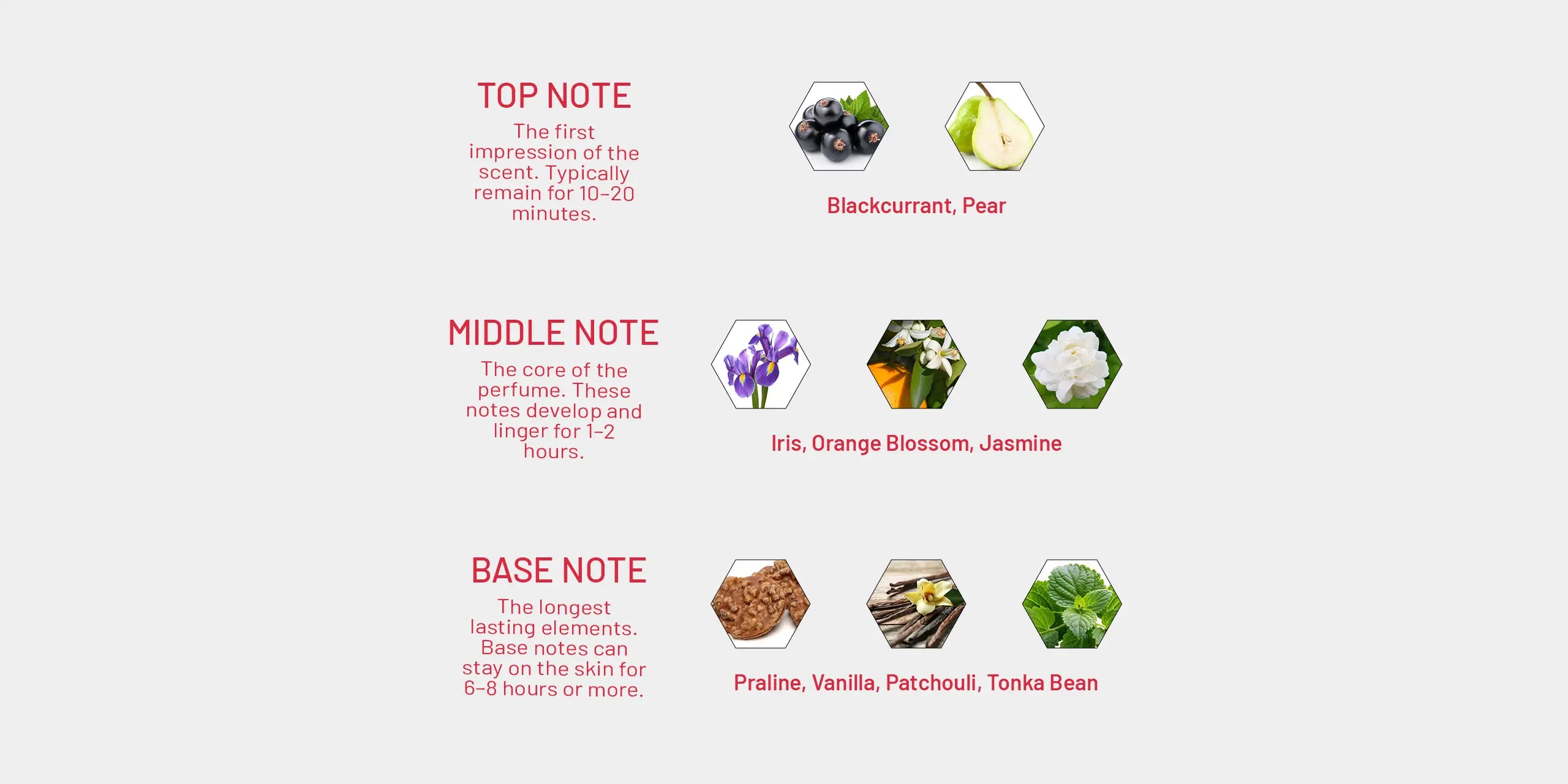 Middle: Iris, Orange Blossom, Jasmine